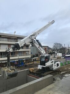 Les pelles équipées de bras télescopique et d’une benne preneuse sont les matériels idoines pour les projets de terrassement difficiles en zone urbaine. Elles peuvent être employées pour récupérer les déblais à 40 m de profondeur et charger les camions. Basé sur une technologie mettant en branle des vérins hydrauliques, le bras télescopique imaginé par l’italien Cosben Equipment Construction s’allonge et se rétracte facilement, malgré une charge complète, en quelques secondes. Ce bras télescopique, plus efficace qu’une grue, peut être équipé d’un Shuttle Q-Fit en option, qui procure à la pelle une meilleure polyvalence sur les chantiers denses. Il bénéfice par ailleurs d’un système de câbles métalliques qui assure une meilleure sécurité sur les chantiers. En cas de rupture d’un câble, l’autre maintiendra le bras fermement en place jusqu’à réparation. Un contrepoids additionnel peut également être ajouté entre la machine et le contrepoids classique, sans déséquilibrer la pelle. Cosben a, en outre, prévu une soupape de sécurité, dans le cas improbable ou un cylindre devait être endommagé. Cosben propose d’autres fonctionnalités intéressantes telles qu’une caméra, afin que le conducteur garde une position correcte et confortable, l’attache rapide Q-Fit déjà évoquée facile à mettre en place et à enlever selon les besoins, et des alarmes de sécurité avertissant l’opérateur en cas de trop grosse pression.