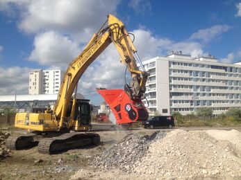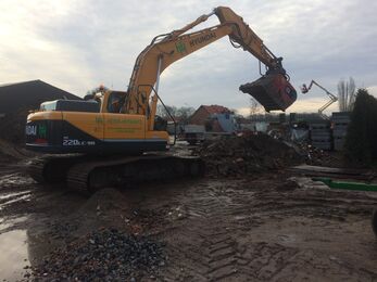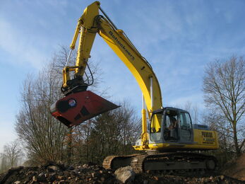 De Gerlasco Crusher Bucket is een innovatieve breekbak die het verwerken van steen en puin een stuk eenvoudiger maakt, vooral als het om kleinere hoeveelheden gaat, of als de locatie geen grote brekerinstallatie toelaat. De breker werkt als een kaakbreker, met een vaste en een bewegende brekerplaat. De breekbak wordt aan een graafmachine bevestigd, de hydraulische functie van de kraan drijft het brekermechanisme van de bak aan. Er zijn geen extra machines nodig en ook geen extra manschappen. Dit levert een aanzienlijke tijd– en kostenbesparing op. De grove stukken puin worden eenvoudig opgeschept in de tapse bak, zodra de machinist de hydraulische functie aanzet, wordt het puin op een eenvoudig instelbare grote gebroken. Door economisch gevormde brekerplaten wordt het product homogeen gebroken op kaliber 20-100mm.