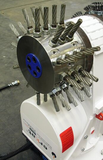 - Geschikt voor het uitvoeren van bodemstabilisatie / bodemverbetering middels een toevoerbuis waardoor toevoegmiddel / emulsie gepompt kan worden om de werken uit te voeren.