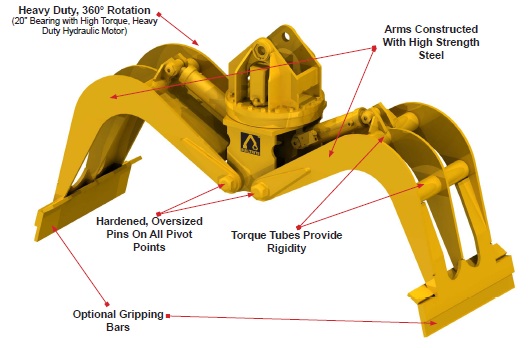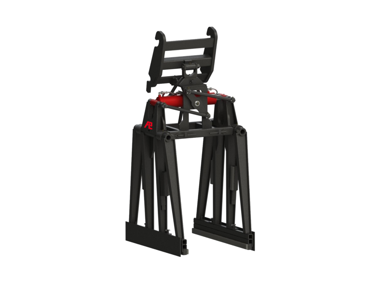 - De klem is voorzien van een liggende dubbelwerkende cilinder, lastveiligheid en twee hogedrukslangen van 1500mm met mannelijke snelkoppelingshelften