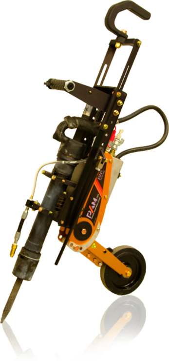 De PAM Dek maakt het werken bij alle soorten bovenhandse sloopwerken enorm lichter. Door zijn bouw, verende armconstructie en blokkeerbare wielen hoeft de sloper het gewicht van het handgereedschap niet meer zelf te dragen. Bovendien worden trillingen en stootbewegingen grotendeels geabsorbeerd door deze verende armconstructie. Het gebruik van de PAM Dek vermindert de vermoeidheid van de sloper wanneer de productie omhoog gaat. Men beschikt over een waterverneveling direct gericht op de beitelpunt om stof tot een minimum te reduceren. Het waterverbruik is minimaal aangezien deze alleen actief is bij een geactiveerde hamer.