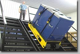 De Track-O is een robuust, met afstandbediening bestuurd transportsysteem voor zware voorwerpen op horizontale en hellende vlakken. Dit omvat bijvoorbeeld ook het vervoeren van lasten op trappen. De Track-O kan zowel binnen als buiten funktioneren op diverse ondergronden. De Track-O Lift is eenvoudig te bedienen en door zijn diverse opbouwmogelijkheden met optionele hulpstukken een grote hulp bij vele werkzaamheden in beperkt toegankelijke ruimten. Optioneel kan deze machine uitgerust worden van een hijsinrichting, en daarmee dienen als minihijskraan / compactkraan.