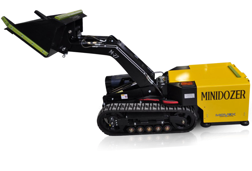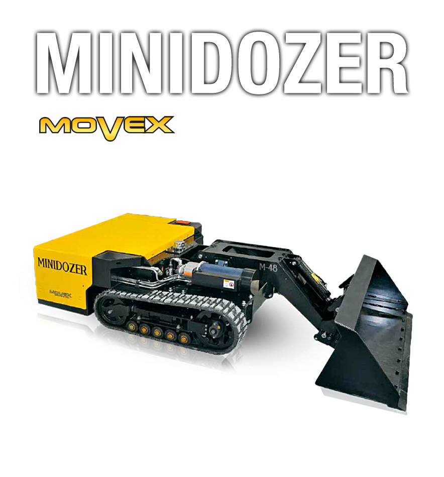 De Minidozer van Track-O werkt op afstandbediening en heeft een actieradius van 8 á 10 uur. Hij is ontworpen voor moeilijk bereikbare plaatsen, zowel binnen als buiten, zoals rioleringen, duikers, schoonmaakwerk onder transportbanden, scheepsruimen, stortbunkers, silo's, ovens, andere opslagtanks.