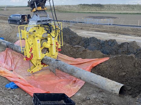 Vonkvrij zagen met TorqCut-zaag van oude gasleidingen bij aannemer Van den Heuvel Infra, voor hoofdaannemer Heijmans in opdracht van Gasunie.